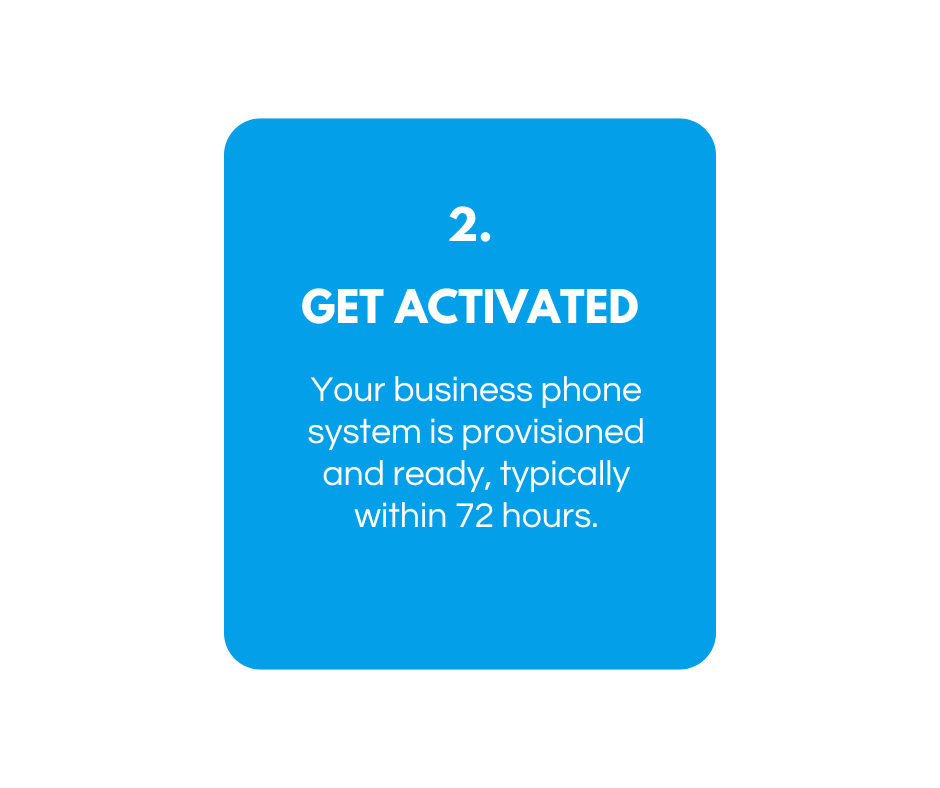 Your business phone system activated within 72 hours of signup. Most accounts are provisioned in less than 72 hours depending on verification.